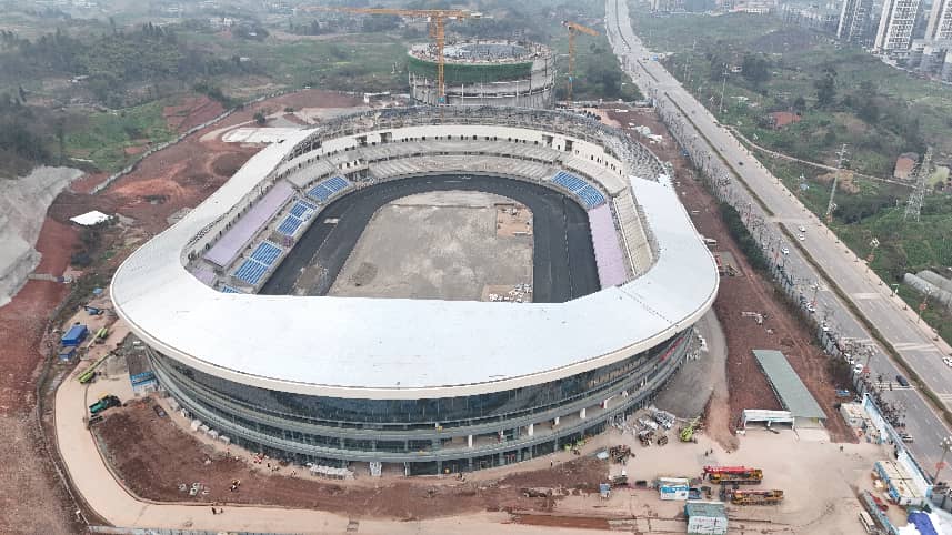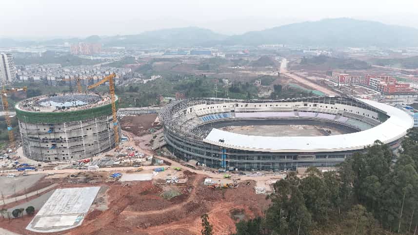 据了解,目前邻水奥体中心项目主体和钢结构已顺利完成施工。春节期间,包括项目管理人员和现场施工人员在内,共有200余人坚守一线,重点攻坚体育工艺、幕墙安装、装饰装修、机电安装等关键环节 。