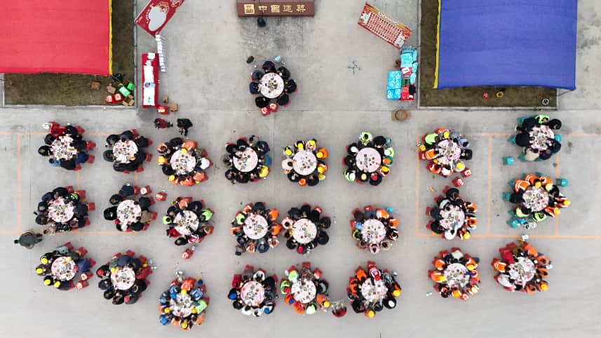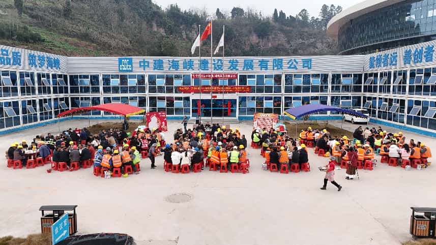 邻水县奥体中心春节抢进度 留守工人用团圆饭“建”证马年新春