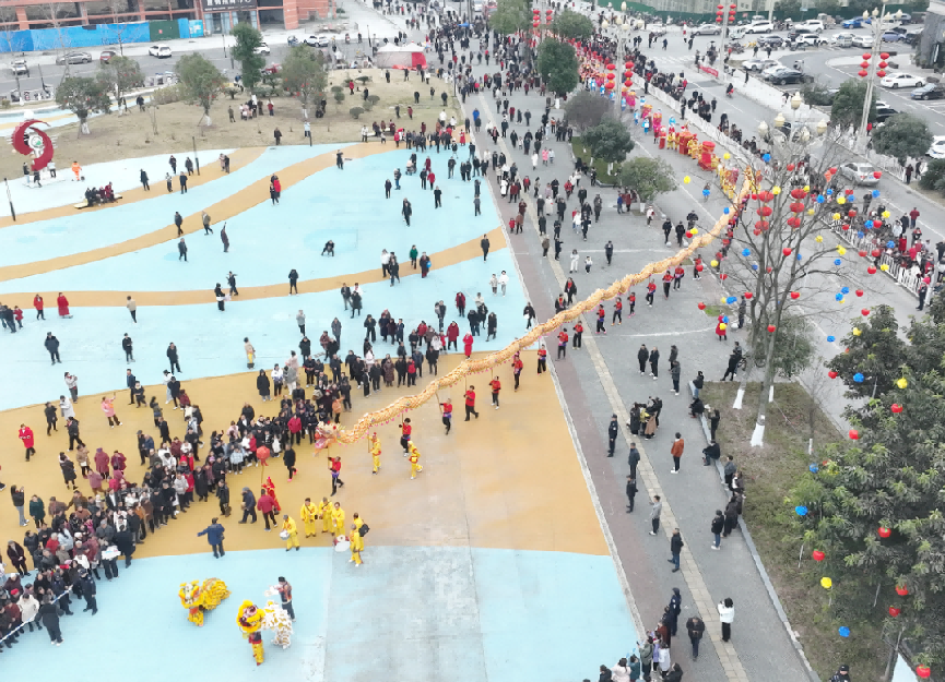 锣鼓喧天辞旧岁,龙狮共舞贺新春。2月17日,农历正月初一,广安市前锋区时代天街广场人头攒动,欢呼声此起彼伏。前锋区2026年“马到成功·福满前锋——千龙千狮闹新春”民俗巡游活动在此激情上演。数万市民涌上街头,更有众多网友通过直播“云端”赏民俗,线上线下同频共振,在浓浓的年味中迎接马年的到来。