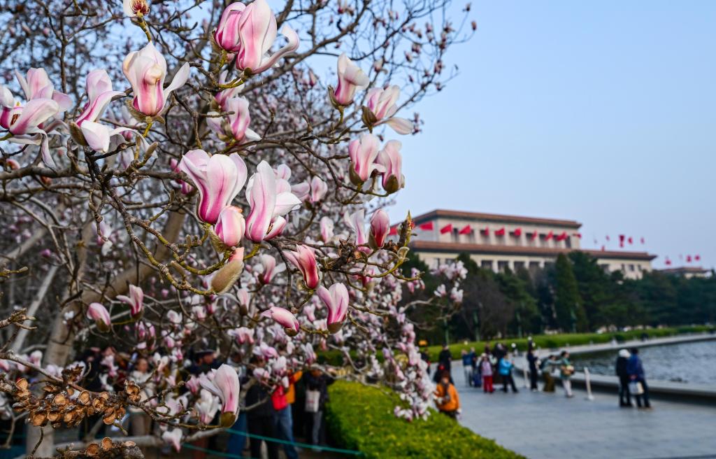 随着气温逐步回升,北京街头的玉兰花悄然盛开,为城市添上一抹靓丽的春色。