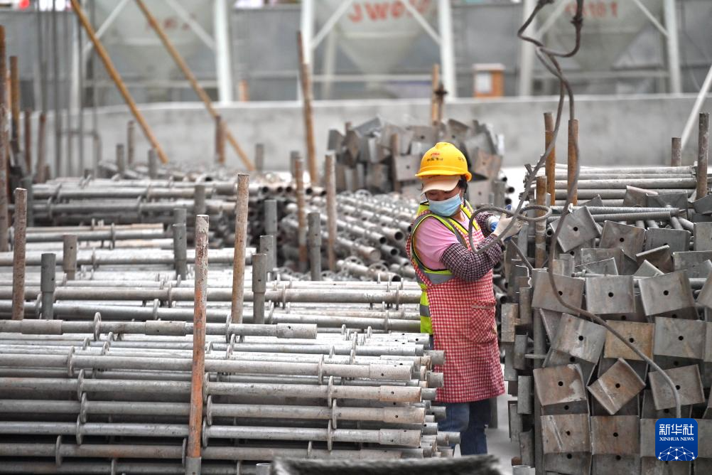 3月16日,中铁二十局工人在南宁市鸡村城中村改造项目建设现场搬运材料。