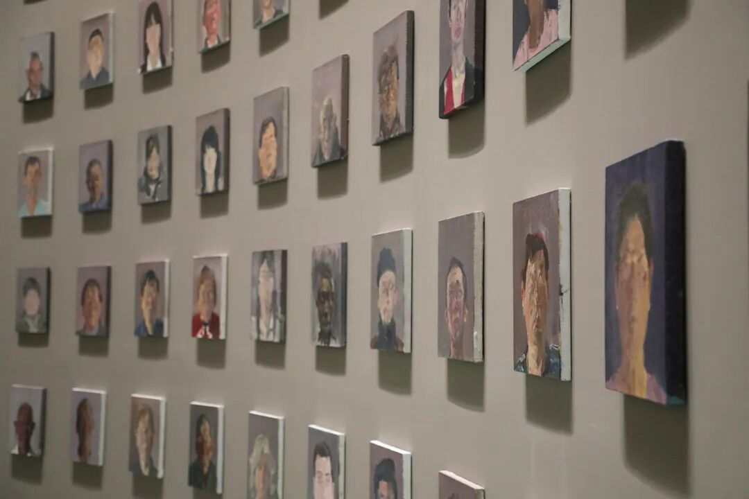 展厅中心为此次展览的核心部分:13米的圆柱体空间内,千余幅面孔排列如“千佛洞”。这种极致的陈设,意在去除表象、回归本心——童雁汝南坚持近乎苦行僧式的“修行”,不随波逐流于当代艺术的潮流游戏,而是通过无数次的“面对面”写生,在方寸画布间构建关于人类精神的微观世界。