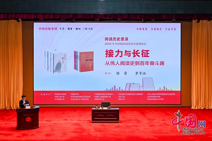 中国网4月20日讯 4月20日,“阅读历史景深——2026年全民阅读周党史名家领读会”在京举行。本次活动由生活·读书·新知三联书店主办,以“接力与长征——从伟人阅读史到百年奋斗路”为主题,特邀原中共中央文献研究室副主任陈晋、中央党校党史教研部原主任罗平汉两位党史名家登台领读。陈晋的领读,让现场观众领略到阅读的力量,不在于知识的堆积,而在于思想的锻造。这种力量,正是中国共产党百年奋斗得以薪火相传的精神底色。罗平汉的领读,让观众从百年奋斗路读懂实事求是的实践智慧。