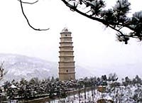 革命圣地延安宝塔山雪景