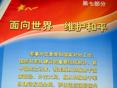 专题首页 | 序厅 | 展览现场 | 战略决策 辉煌历史 | 军事过硬 钢铁长城 | 铸牢军魂 永葆本色 | 勤俭建军 保障有力 | 自主创新 跨越发展 | 牢记宗旨 建设祖国 | 面向世界 维护和平