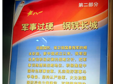 专题首页 | 序厅 | 展览现场 | 战略决策 辉煌历史 | 军事过硬 钢铁长城 | 铸牢军魂 永葆本色 | 勤俭建军 保障有力 | 自主创新 跨越发展 | 牢记宗旨 建设祖国 | 面向世界 维护和平