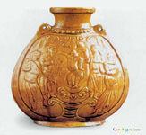 秦汉至南北朝时期酒器:胡腾舞黄釉扁壶
