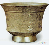 隋唐酒器:仕女狩猎纹八瓣银杯