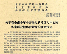 市体委、教育局、团市委关于在全市少年开展以乒乓球为中心的冬季群众性体育锻炼的联合决定