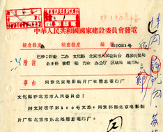 国家建设委员会关于同意北京电影制片厂建厂的电报稿